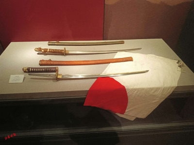 6.刻有“太原入城凱旋紀(jì)念復(fù)興皇國恢弘天業(yè)”字跡的日軍九八式軍刀。