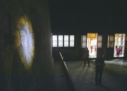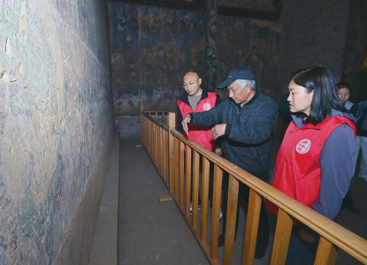 4月10日,山西省文化遺產(chǎn)規(guī)劃研究院勘察設(shè)計(jì)團(tuán)隊(duì)在高平仙翁廟正殿內(nèi)借助冷光源進(jìn)行壁畫(huà)病害調(diào)查。