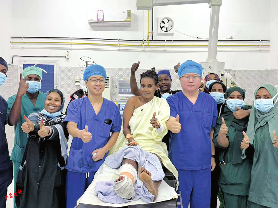 在麻醉的作用下,患者全程清醒、無(wú)痛。骨科醫(yī)生楊青則憑借熟練的手術(shù)操作,成功為她實(shí)施了創(chuàng)面皮膚軟組織清創(chuàng)術(shù)。患者術(shù)后恢復(fù)良好,對(duì)醫(yī)療隊(duì)的精湛醫(yī)術(shù)和無(wú)私奉獻(xiàn)表示由衷的感謝。她表示,從未想過(guò)在吉布提能夠接受到如此卓越非凡的醫(yī)療服務(wù),感謝中國(guó)醫(yī)療隊(duì)的到來(lái),為自己帶來(lái)了希望。