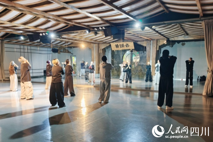 東郊記憶園區(qū)HELLODANCE吾街舞工作室內(nèi),街舞愛好者正在練習(xí)舞蹈。人民網(wǎng) 趙祖樂攝