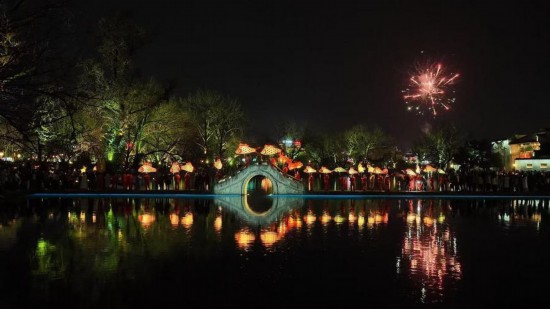 在江蘇無錫拈花灣,鐵花飛濺,火龍穿行,約旦游客阿爾舒爾曼連連驚嘆。