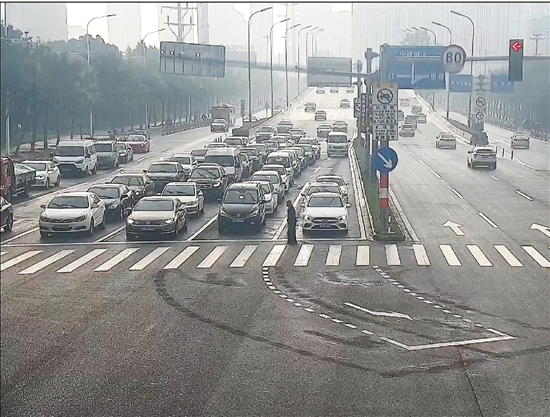接下來會(huì)發(fā)生什么呢?通過視頻監(jiān)控可以看到,東西向的車輛有一部分開始動(dòng)起來,但老人左手邊三個(gè)車道的車都紋絲不動(dòng),等著老人安全走過來。