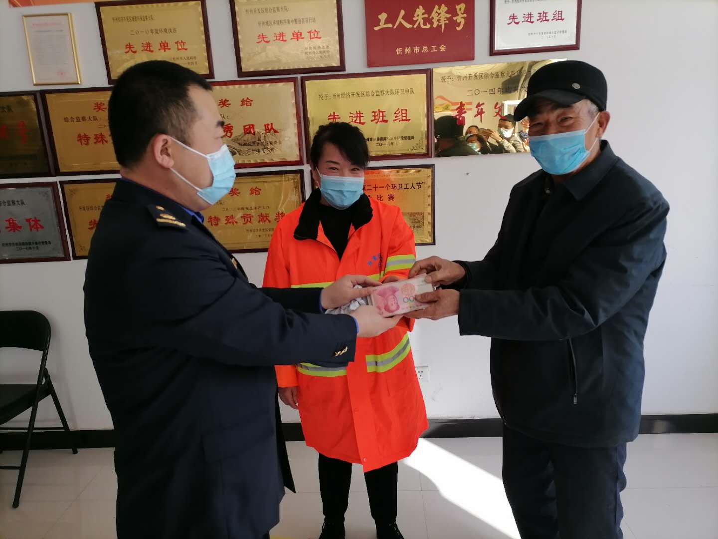 2月5日上午,來到忻州開發(fā)區(qū)城管綜合執(zhí)法隊辦公室。連日來,因丟失2萬元現(xiàn)金籠罩在69歲農(nóng)民工趙大爺和他一家人心頭的煩惱和惆悵一掃而光。 “真是遇到了好心人,我們一家人這下可以安心過個年了!……”當(dāng)泛華小區(qū)門衛(wèi)趙大爺親手接過失而復(fù)得的巨額現(xiàn)金時,抑制不住內(nèi)心的激動,緊緊握著環(huán)衛(wèi)女工張慧蓮的手不停地道謝,并送上全家人的心愿“拾金不昧 品德高尚”錦旗。 事情要從2月2日上午說起,環(huán)衛(wèi)工張慧蓮像往常一樣在責(zé)任路段進行衛(wèi)生清掃。當(dāng)她清掃到開發(fā)區(qū)郵政局門前的非機動車道附近時,突然發(fā)現(xiàn)一個不起眼的黑色塑料袋。打開一看,里邊裝著兩捆百元大鈔。心想丟錢的人一定非常著急……而當(dāng)時天寒地凍四下無人,于是,張慧蓮一邊看護好“塑料袋”,一邊在原地等候。一直到中午時分仍不見有人來尋找。于是,她決定在下班前把“塑料袋”交回執(zhí)法隊領(lǐng)導(dǎo)手中,經(jīng)領(lǐng)導(dǎo)和同志們現(xiàn)場清點,一共是2萬元人民幣現(xiàn)金。 為了盡快找到失主,忻州開發(fā)區(qū)城管綜合執(zhí)法隊負(fù)責(zé)人第一時間聯(lián)系市主流媒體忻州日報社并通過忻州在線網(wǎng)發(fā)布了《環(huán)衛(wèi)工撿到兩萬元急尋失主》的消息。之后,幾經(jīng)輾轉(zhuǎn),失主趙大爺?shù)挠H友看到這一重要信息,及時轉(zhuǎn)告了趙大爺及其家屬。因丟失現(xiàn)金急得團團轉(zhuǎn)的一家人,立即與開發(fā)區(qū)城管執(zhí)法隊領(lǐng)導(dǎo)取得了聯(lián)系,并約定了相關(guān)認(rèn)領(lǐng)、交接時間和辦法。 “不是自己的錢堅決不能拿,我十分理解丟失巨額現(xiàn)金人急切的心情。雖然我是一個普通的環(huán)衛(wèi)工人,也許生活并不富足,但認(rèn)真做事,踏實做人是我的人生準(zhǔn)則。生活在這個越來越美好的城市,我愿做一朵文明建設(shè)的“浪花”……”在交還失“金”現(xiàn)場,張慧蓮靦腆地對記者說。 開發(fā)區(qū)城管綜合執(zhí)法隊副隊長姜宇星向見證這一義舉的媒體記者介紹說,張慧蓮和丈夫石成良的經(jīng)濟條件并不寬裕,兩個人的月工資都在2000元上下。說實話,2萬元對其家庭來說也是個巨大的數(shù)字了。拾金不昧,我們的環(huán)衛(wèi)女工張慧蓮做到了。其實,好人就在我們的身邊。張慧蓮用自己拾金不昧的行動彰顯了一座城市的文明刻度,是我們這支認(rèn)真負(fù)責(zé),兢兢業(yè)業(yè),文明向上隊伍的一個形象縮影和代言人。 “在‘近者悅,遠(yuǎn)者來’的文明忻州,如果你做一點,我做一點,把好事善事匯聚成這個城市的一種品格,相信我們的生活就會越來越美好?!睆埢凵徝摽诙觥?/p> 環(huán)衛(wèi)工人是美麗城市、文明城市建設(shè)不可或缺的一支重要力量。據(jù)了解,近年來,該隊環(huán)衛(wèi)工人撿拾現(xiàn)金、證件、手機等物品等好人好事已有100余起,每次都讓失物及時完壁歸趙、物歸原主。有熱心市民表示,忻州環(huán)衛(wèi)工是平凡的,也是偉大的,守護著這座城市的整潔與美麗。 (記者張志遠(yuǎn)) (責(zé)任編輯:梁艷) |