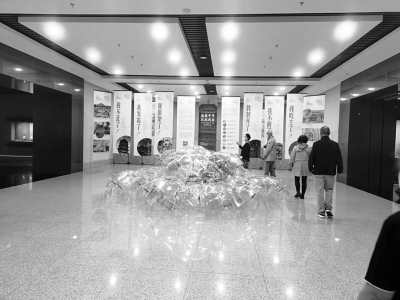 在展示區(qū)域中間,約60把透明的雨傘組建起了“傘陣”藝術(shù)裝置,如果你仔細(xì)觀看,上面有馬克筆繪制的全省重點(diǎn)文物保護(hù)單位的建筑圖案,彰顯了展覽主題。此外,四周懸掛著宣傳海報(bào),上面的內(nèi)容也帶有普及性。比如,氣候變化的影響,氣溫升高、干旱加劇、風(fēng)暴肆虐等一些惡劣自然條件,給人類(lèi)生活帶來(lái)的影響,看著上面的文字,也讓人越發(fā)了解到環(huán)境保護(hù)以及自然保護(hù)的重要性。此外,海報(bào)中還展示了因受到天氣影響,古建筑受損后的樣貌,如古建筑開(kāi)裂、發(fā)霉、散架等,多角度呈現(xiàn)古建筑受病害困擾時(shí)的狀態(tài),令人唏噓感慨。