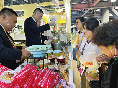 “想的就是這一口濃濃的山西味道??!”在上海讀書、工作十余年的長(zhǎng)治姑娘小鄧提前預(yù)約觀展,特地找到山西展區(qū),讓她最驚喜的是,在這里能夠飽嘗最正宗的家鄉(xiāng)味道!她一邊在山西刀削面的展位前排隊(duì)等候,一邊告訴山西晚報(bào)記者。