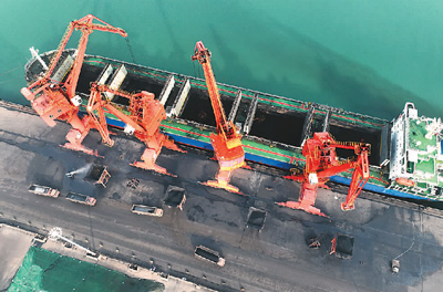 連日來,江蘇連云港港加快冬季電煤運(yùn)輸和儲備,全力保障發(fā)電企業(yè)供暖用煤需求。圖為11月22日,貨輪在連云港港煤炭碼頭卸載電煤。王 春攝(人民視覺)