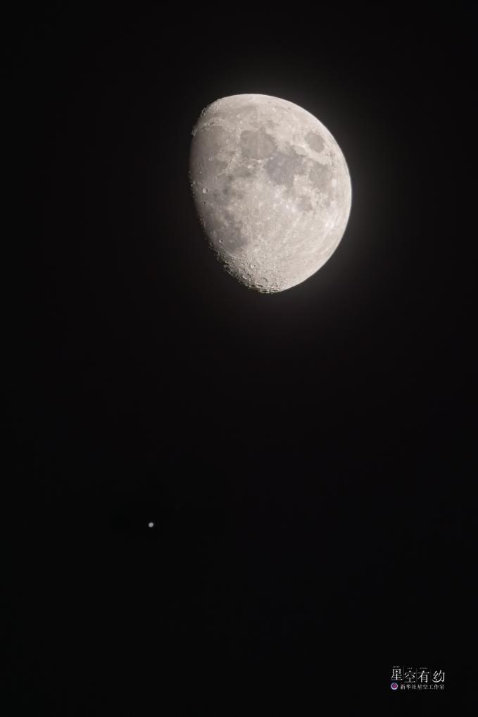 天津星空攝影愛好者劉慶2023年12月22日在天津西青區(qū)拍攝的木星伴月。(本人供圖)
