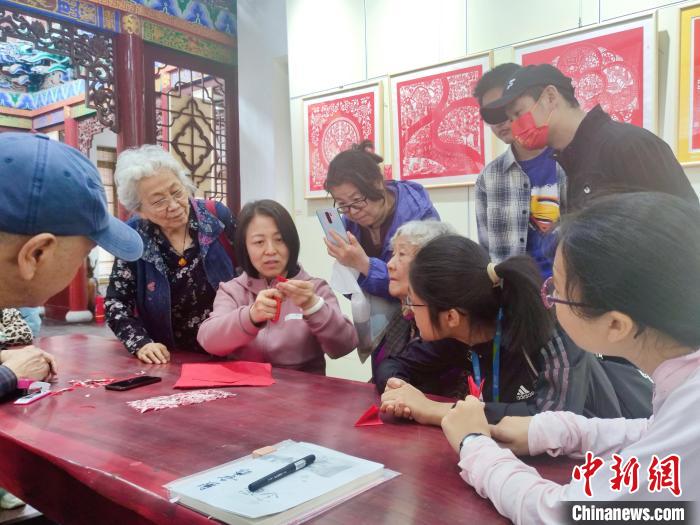 游客現(xiàn)場體驗剪紙,感受中華傳統(tǒng)文化的魅力。楊靜攝