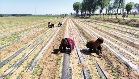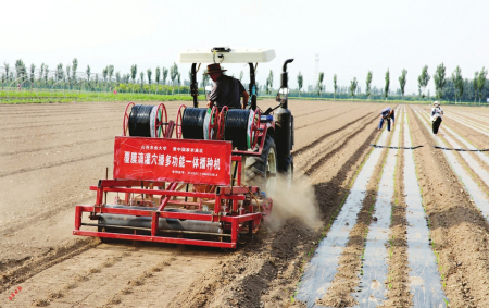 3.多功能一體播種機(jī)鋪設(shè)滴管。