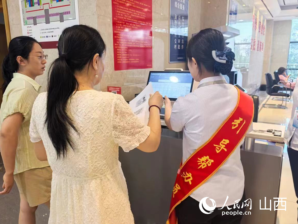 咨詢崗工作人員幫助辦事群眾梳理所需材料及辦理流程。人民網(wǎng)記者 王晏如攝