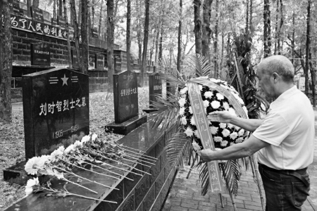 長子獨(dú)立團(tuán)團(tuán)長劉時智烈士的墓碑前,來自湖北省紅安縣華河鎮(zhèn)大學(xué)村的劉正業(yè)捧著從家鄉(xiāng)帶來的水和土,淚流滿面,反復(fù)說著“侄子不孝,現(xiàn)在才找到您,這么晚才來看您?!?/p>