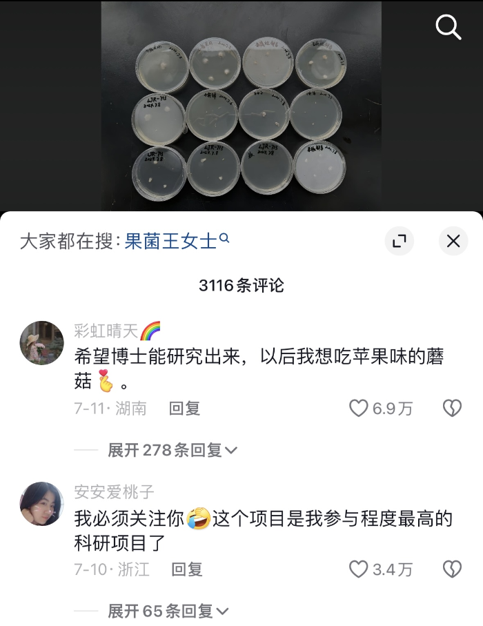 及時(shí)將“長(zhǎng)菌蘋果”拿來(lái)研究,正好能趁熱打鐵,將“果菌王”網(wǎng)梗的熱度轉(zhuǎn)化為相關(guān)科普的熱度,將網(wǎng)友的玩梗興趣變成對(duì)科學(xué)知識(shí)的興趣。