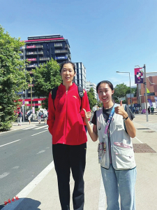 武晨曦(右)在巴黎和中國女排運(yùn)動(dòng)員朱婷合影。