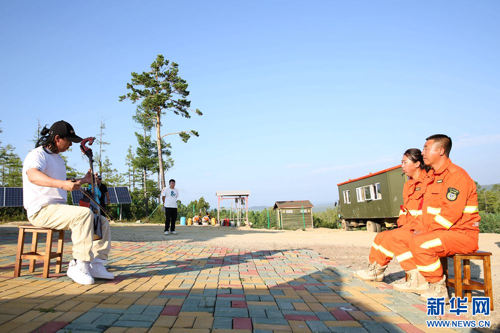 內蒙古大興安嶺烏蘭牧騎隊員走上爬松嶺管護瞭望站,為孫華李穎夫婦獻上精彩演出(拍攝于8月12日)。新華網(wǎng)石毅 攝