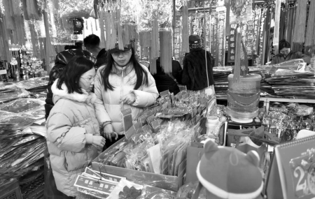 “今年蛇年,對(duì)聯(lián)和掛飾肯定以蛇元素為主,品類更加豐富,背膠和磁吸設(shè)計(jì),掛貼更為方便?!痹谔炒筚u場(chǎng),邢先生售賣春聯(lián)和窗花、燈籠等各類春節(jié)掛飾20多年了,一副副大紅的春聯(lián)掛滿了兩面墻壁,各類福字和掛飾鋪滿了整個(gè)攤位,顧客們正在選購自己喜歡的春聯(lián)和掛飾。他說,今年的春聯(lián)和春節(jié)掛飾有大幾百種,豐富多樣。臘八過后,來購買對(duì)聯(lián)和過年掛飾的人就開始多了起來,預(yù)計(jì)年前一周左右會(huì)達(dá)到高峰。
