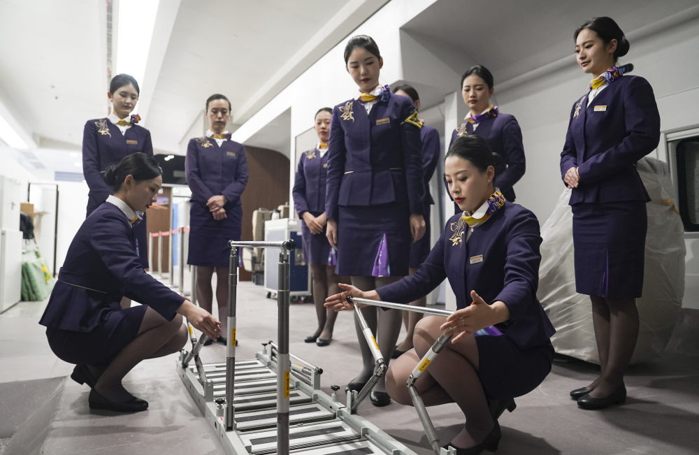 1月10日,鐵路上??瓦\段高鐵一車隊乘務(wù)人員在列車模擬艙內(nèi)開展應(yīng)急演練培訓(xùn)。新華社發(fā)(程志兵攝)