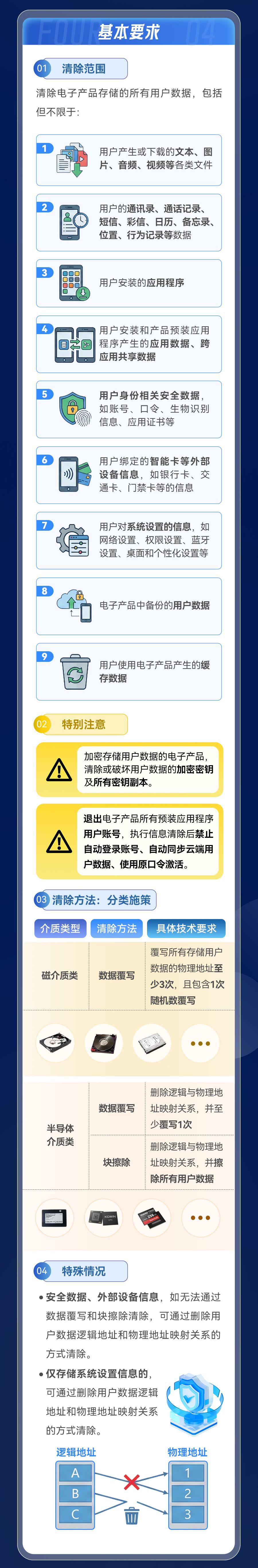 近日,一項(xiàng)名為《數(shù)據(jù)安全技術(shù) 電子產(chǎn)品信息清除技術(shù)要求》的強(qiáng)制性國家標(biāo)準(zhǔn)正式發(fā)布,并將于2027年1月1日起實(shí)施。那么,這項(xiàng)標(biāo)準(zhǔn)究竟如何從技術(shù)上守護(hù)數(shù)據(jù)安全?它對(duì)于電子產(chǎn)品廠商、回收經(jīng)營者乃至普通消費(fèi)者分別意味著什么呢?