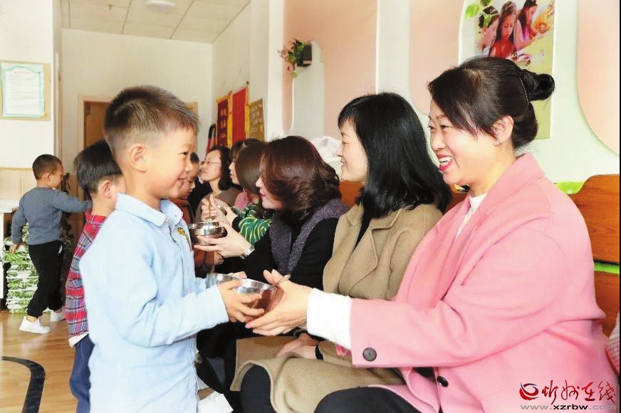 3月8日,忻州市幼兒園雁門分園舉辦了以感恩為主題的親子活動(dòng),通過形式多樣的活動(dòng)讓孩子們陪媽媽一起過節(jié),引導(dǎo)幼兒從小學(xué)會(huì)感恩,讓媽媽們感受到孩子的成長與愛。圖為活動(dòng)當(dāng)天,幼兒將自己做的梨湯送給媽媽。 (本報(bào)通訊員 攝)