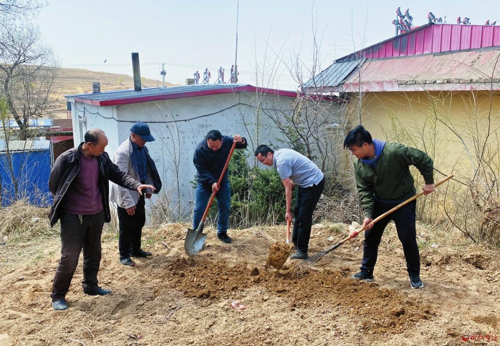 近幾年,駐村工作隊(duì)員們?yōu)榇讼肓撕芏帱c(diǎn)子。今年春季,他們帶領(lǐng)村民開(kāi)辟了“三道壟”。第一道壟在村委會(huì)屋后種蔬菜,由他們帶頭,在村內(nèi)先行打造庭院經(jīng)濟(jì)示范地。第二道壟在村內(nèi)荒坡上的大棚里,準(zhǔn)備種綠皮無(wú)籽大西瓜,推廣旱地西瓜種植。第三道壟在村東頭的山坡上,計(jì)劃種植杏樹(shù)林,待天氣轉(zhuǎn)暖后再種植一些適合林下生長(zhǎng)的芍藥、玫瑰、月季等,發(fā)展觀賞經(jīng)濟(jì)。