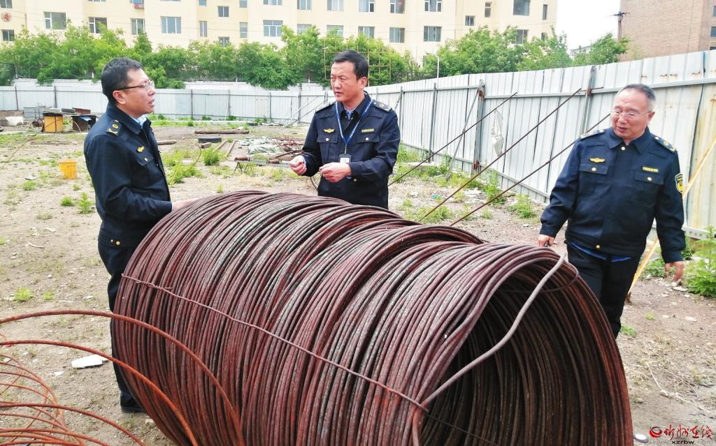 為加強產(chǎn)品質(zhì)量安全監(jiān)管,嚴格落實安全生產(chǎn)責任制,確保建筑材料質(zhì)量安全,按照建筑材料產(chǎn)品質(zhì)量安全專項整治工作方案,近日,市市場監(jiān)管局對我市建筑材料生產(chǎn)經(jīng)營單位,開展建筑材料產(chǎn)品質(zhì)量安全專項檢查。圖為工作人員深入鋼材市場進行檢查。 (李 濤攝)