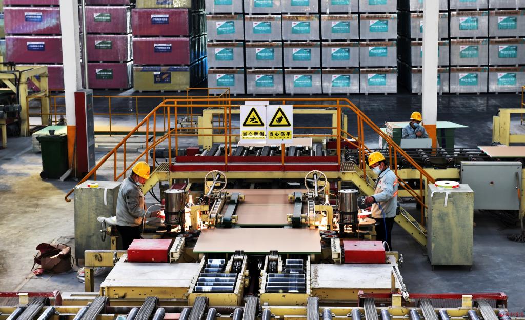 忻府區(qū)豆羅工業(yè)園區(qū)泰山石膏板公司自動(dòng)化生產(chǎn)線。馮曉磊 攝