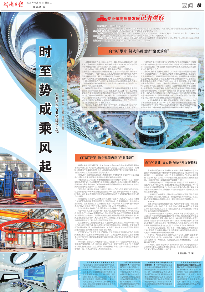 單項(xiàng)冠軍、隱形冠軍、專(zhuān)精特新“小巨人”層出不窮……在法蘭產(chǎn)業(yè)的賽道上,定襄早已戰(zhàn)績(jī)顯赫,如今,在數(shù)字化賦能行動(dòng)中,定襄正在加快企業(yè)“上云用數(shù)賦智”步伐,推動(dòng)企業(yè)由“上云上平臺(tái)”向“賦能賦智”升級(jí),以期牢牢領(lǐng)先全國(guó)鍛造產(chǎn)業(yè)集群一極。這也正是向“新”進(jìn)軍的深意所在。