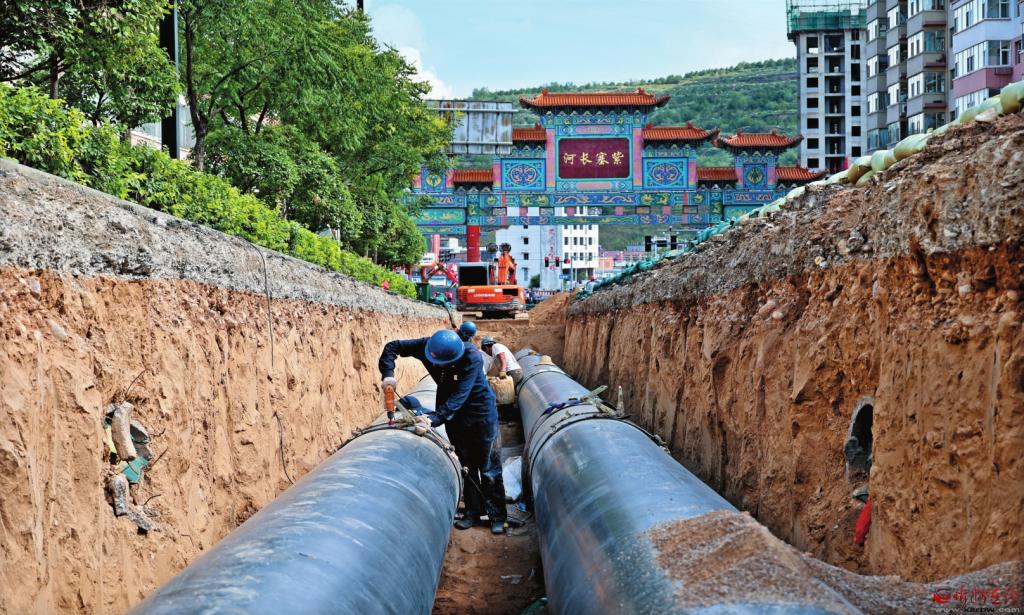 縣城主干道管網(wǎng)鋪設(shè)施工現(xiàn)場。 本報記者張存良攝