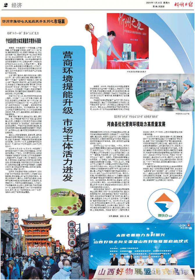 從黃河之畔到五臺山下,一些變化正在忻州大地悄然發(fā)生。2023年,我市從促進經(jīng)營主體發(fā)展、大力優(yōu)化營商環(huán)境、加快建設(shè)高標準市場體系三個維度推動市場能級躍升,詮釋著貫徹黨的二十大精神開局之年的新作為、新風貌,以“看不見的手”推動著忻州經(jīng)濟社會高質(zhì)量發(fā)展。