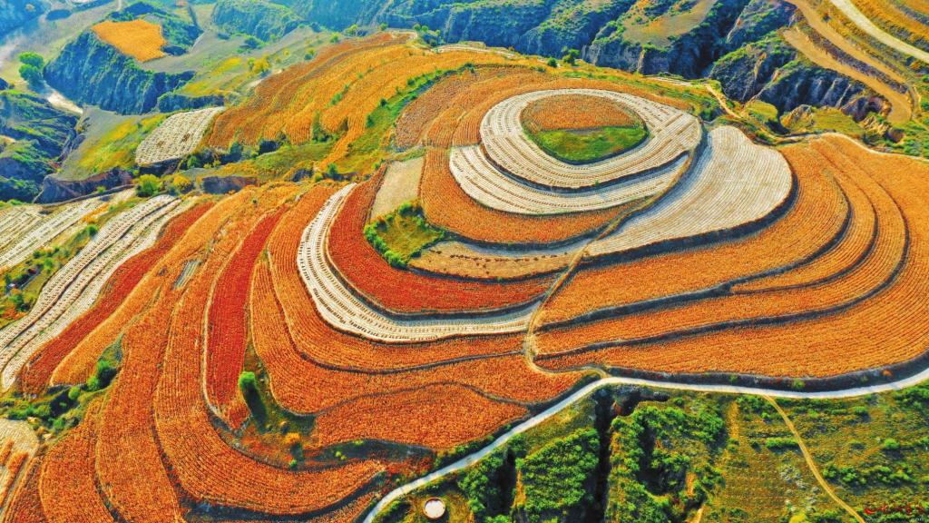 圖為偏關谷子喜獲豐收。陳鑫龍攝