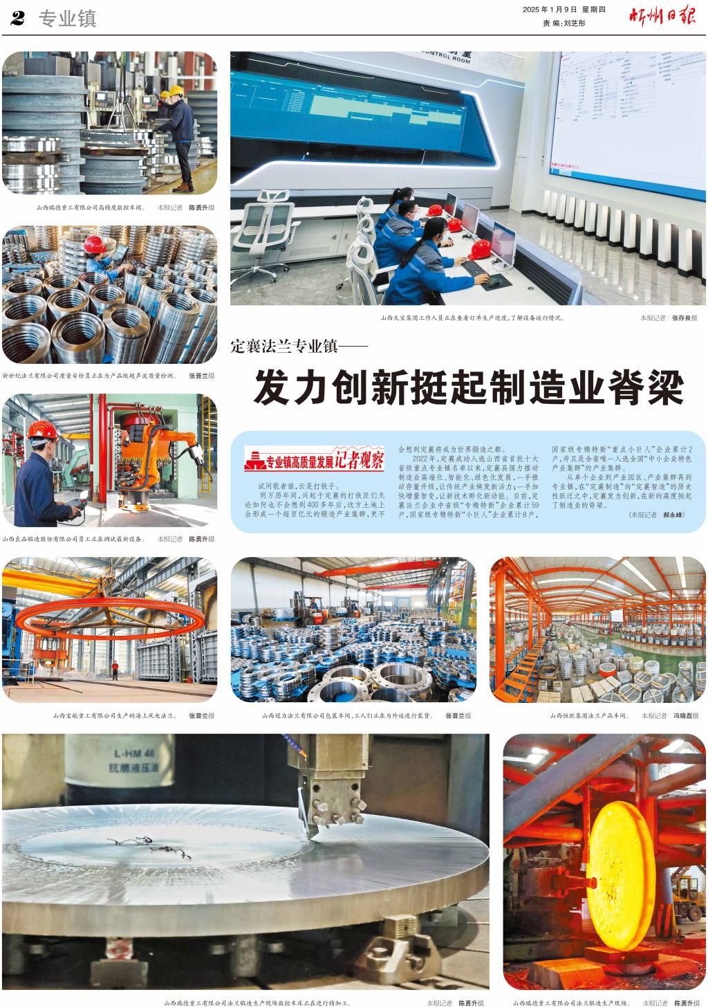 浪涌四方,潮起定襄。定襄,這個(gè)以法蘭鍛造聞名全國(guó)的晉北工業(yè)小城自2022年成功入選山西省首批十大省級(jí)重點(diǎn)專(zhuān)業(yè)鎮(zhèn)以來(lái),就開(kāi)始了在法蘭產(chǎn)業(yè)賽道上的強(qiáng)勢(shì)進(jìn)階。去年以來(lái),定襄縣以黨的二十屆三中全會(huì)精神為指引,全面深化改革,用“高”“智”“綠”“服”的理念和行動(dòng),進(jìn)一步推進(jìn)法蘭產(chǎn)業(yè)質(zhì)量變革、效率變革、動(dòng)力變革。