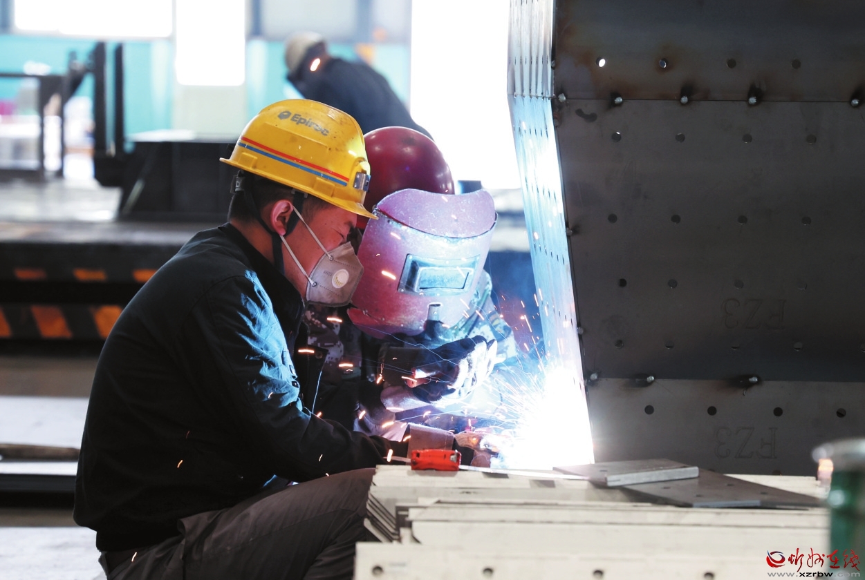 在久力科技的機(jī)械加工車(chē)間,工作人員正在對(duì)零部件進(jìn)行焊接作業(yè)。記者范琛攝
