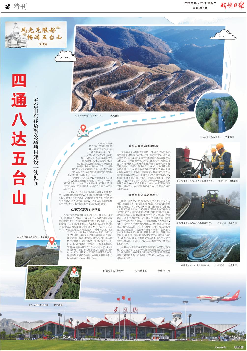 近日,備受關(guān)注的五臺(tái)山東線旅游公路建設(shè)迎來關(guān)鍵節(jié)點(diǎn),項(xiàng)目已進(jìn)入收尾階段。這一交通要道建成后,將與景區(qū)已有的南、北、西三線公路形成“四向貫通”的陸路交通格局,再疊加已投入運(yùn)營(yíng)的五臺(tái)山機(jī)場(chǎng)及正在加速建設(shè)的雄忻高鐵,五臺(tái)山“空鐵陸”多維立體交通網(wǎng)絡(luò)日益完善,真正實(shí)現(xiàn)“四通八達(dá)”,為海內(nèi)外游客前來旅游提供了更為便捷、高效的出行選擇。