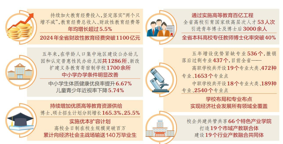 教育是國(guó)之大計(jì)、黨之大計(jì),也是每個(gè)家庭的心頭事。“十四五”以來(lái),在省委、省政府堅(jiān)強(qiáng)領(lǐng)導(dǎo)下,全省教育系統(tǒng)深入貫徹落實(shí)習(xí)近平總書(shū)記關(guān)于教育的重要論述,全面貫徹黨的教育方針,堅(jiān)定落實(shí)教育優(yōu)先發(fā)展戰(zhàn)略,有力推動(dòng)“十四五”規(guī)劃各項(xiàng)指標(biāo)任務(wù)全面完成,為“十五五”時(shí)期加快建設(shè)教育強(qiáng)省奠定了堅(jiān)實(shí)基礎(chǔ)。