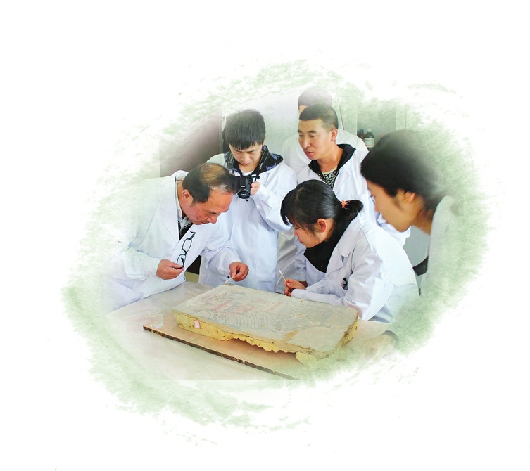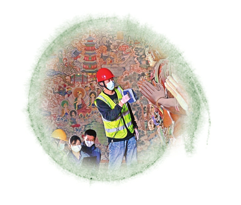 云岡石窟專業(yè)技術(shù)人員在開(kāi)展教學(xué)實(shí)踐,帶領(lǐng)學(xué)生進(jìn)行壁畫(huà)保護(hù)修復(fù)實(shí)操。云岡石窟研究院提供