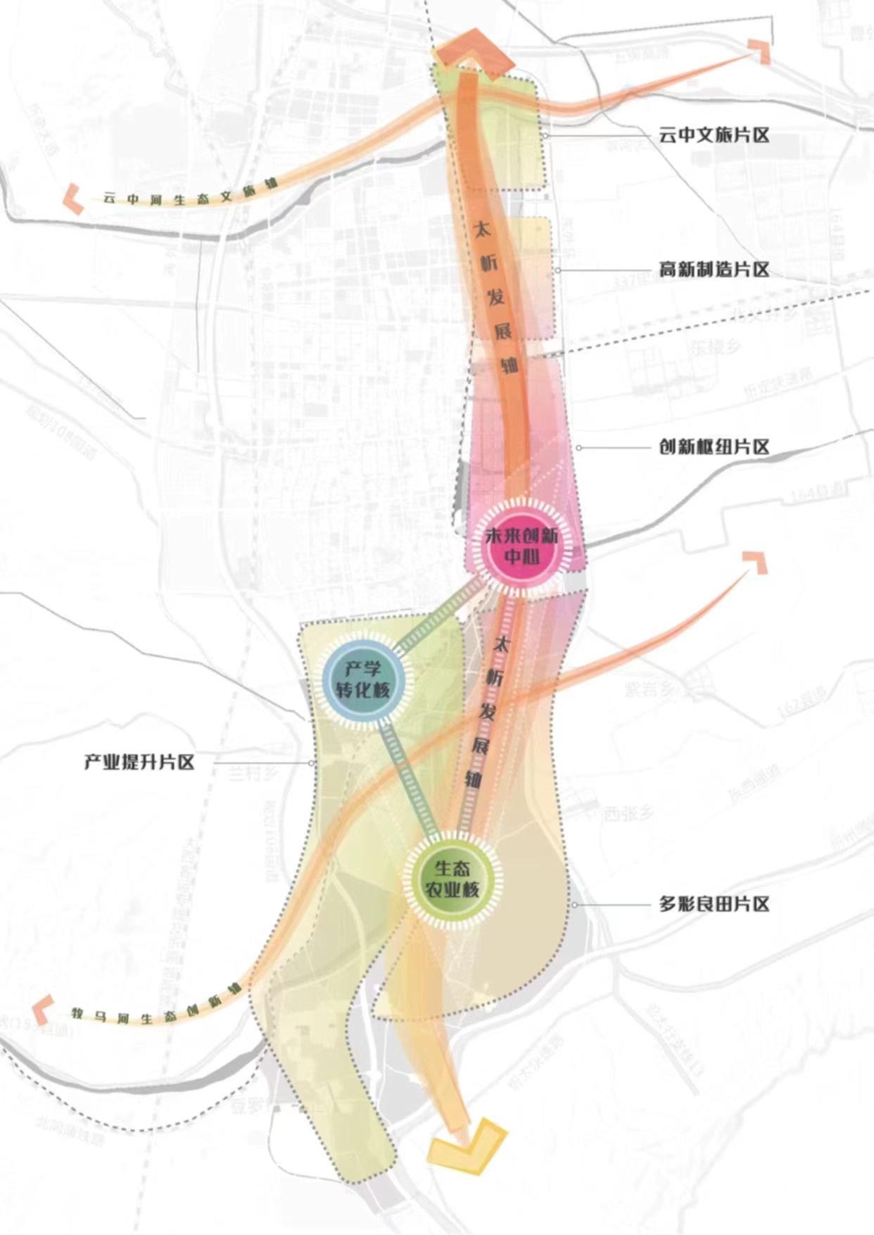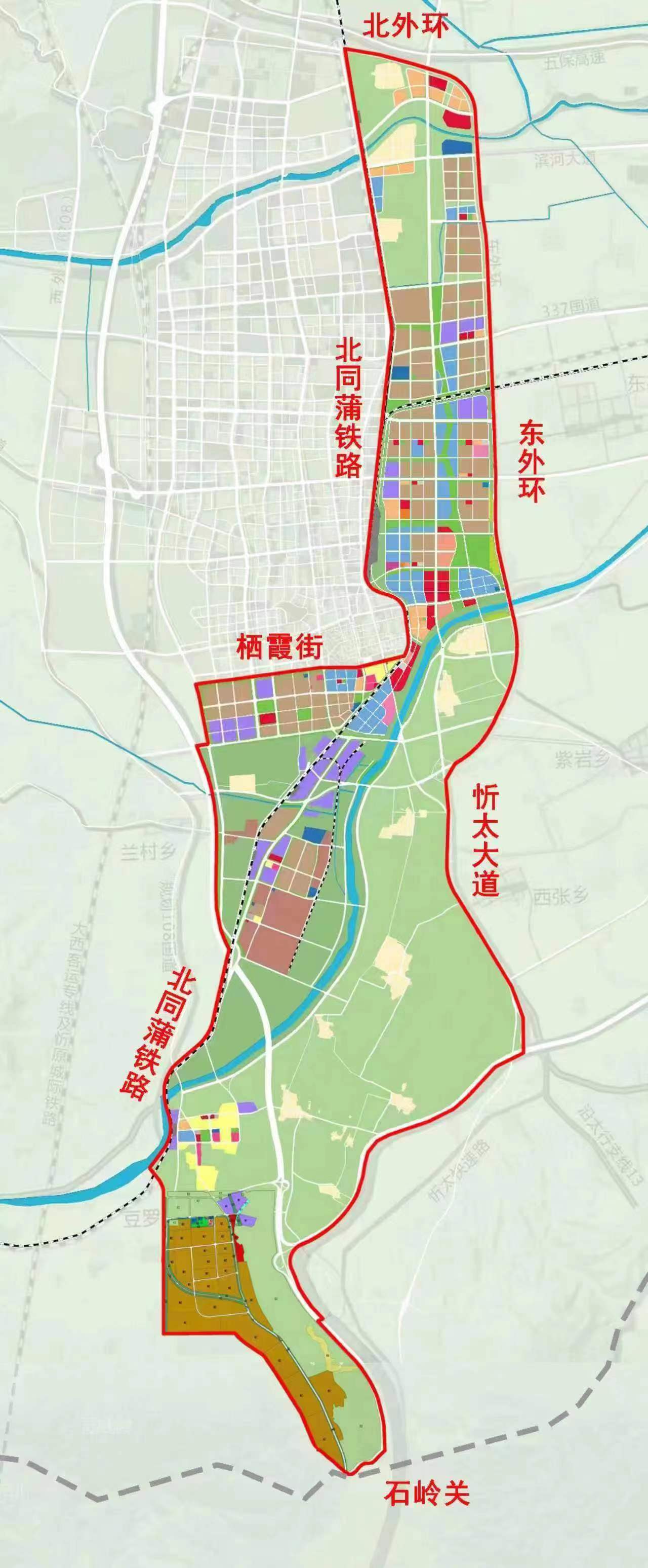 規(guī)劃面積約100平方公里,北至北外環(huán),南至石嶺關(guān)(太原界),西至北同蒲鐵路,東至東外環(huán)。新區(qū)作為太忻一體化經(jīng)濟(jì)區(qū)忻州片區(qū)的啟動區(qū),堅持生態(tài)優(yōu)先、綠色發(fā)展,統(tǒng)籌生活、生態(tài)、生產(chǎn)三大空間,以“一心雙核、三軸五片區(qū)”規(guī)劃布局,預(yù)留未來產(chǎn)業(yè)發(fā)展用地,重點發(fā)展雜糧產(chǎn)業(yè)、現(xiàn)代物流產(chǎn)業(yè)、新能源材料產(chǎn)業(yè)、文旅產(chǎn)業(yè)和科技創(chuàng)新智造產(chǎn)業(yè),北部打造高新制造集合體、云中河?xùn)|段打造休閑度假文旅區(qū)、中部打造創(chuàng)新樞紐核心區(qū)、西南部打造產(chǎn)業(yè)提升區(qū)、東南部打造多彩良田示范區(qū),形成與大盂產(chǎn)業(yè)新城南北呼應(yīng)之勢。