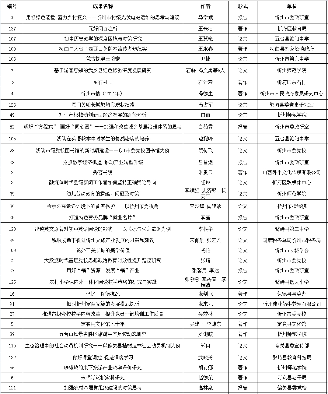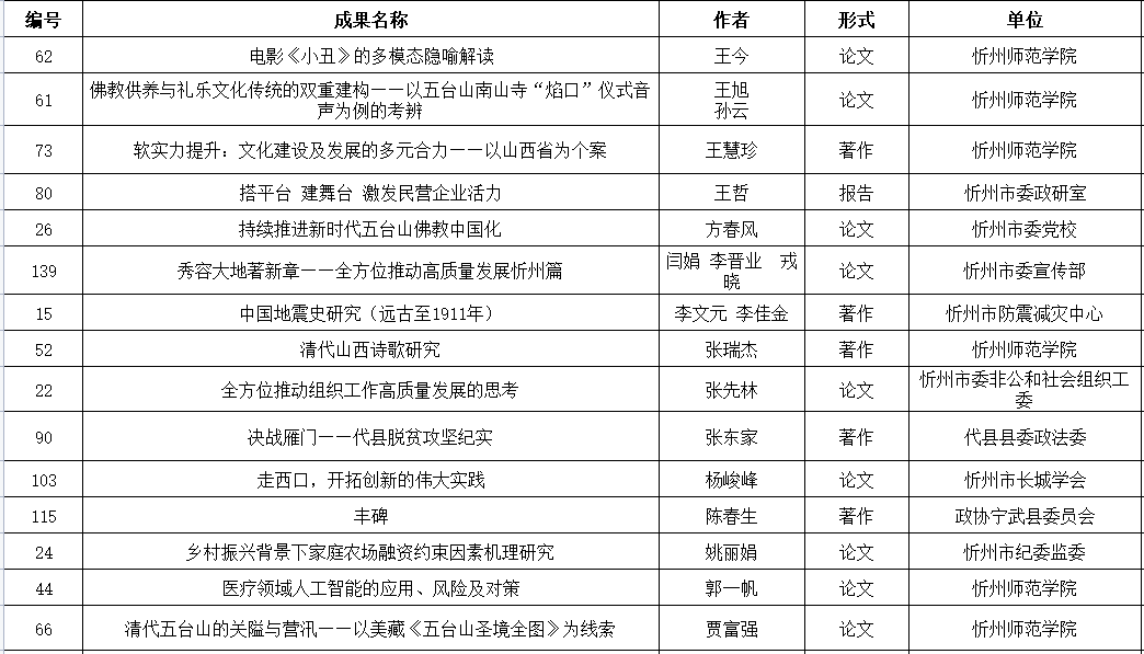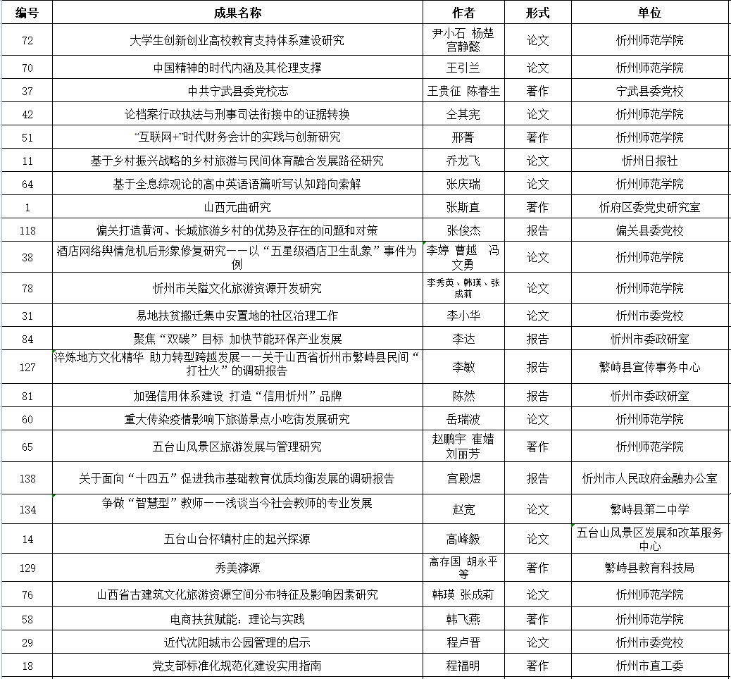 附件:忻州市社會科學研究優(yōu)秀成果評獎擬獲獎名單