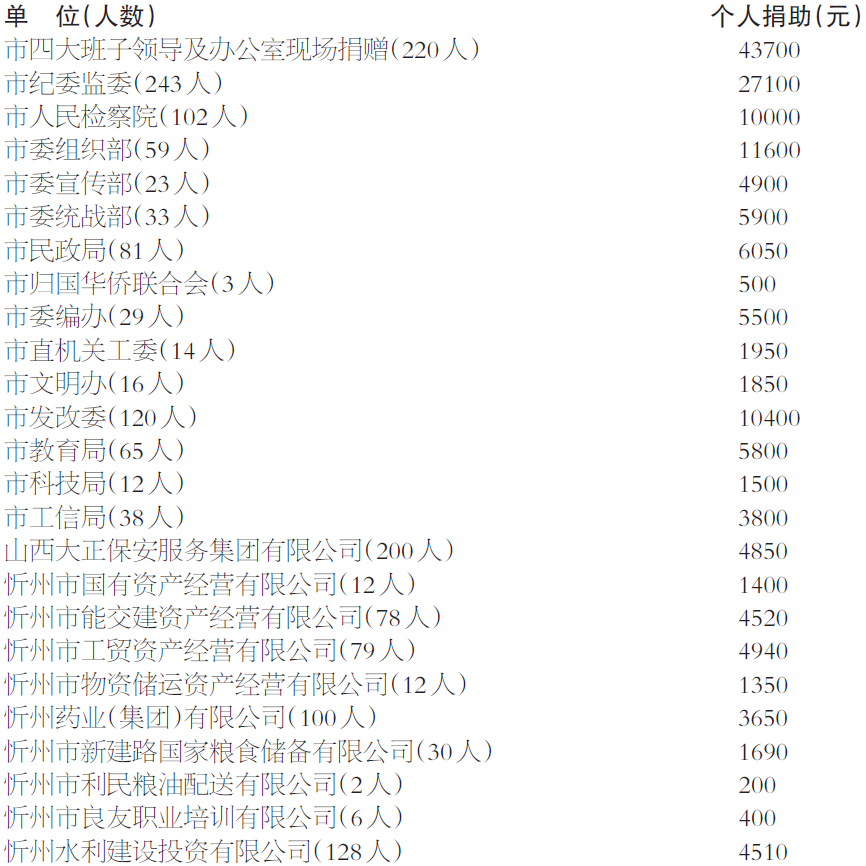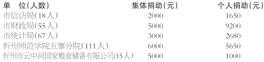 一、集體和個人同時捐助的單位(5個):