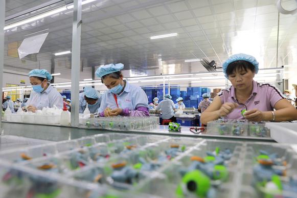 2017年,連樟村建起了一個(gè)913平方米的車間,2018年開始投產(chǎn),主要生產(chǎn)兒童玩具,村民責(zé)負(fù)流水線上的裝配生產(chǎn),成品發(fā)往全國各地,有些還出口到了海外。通過引導(dǎo)市場資本向農(nóng)村轉(zhuǎn)移,地處粵北偏遠(yuǎn)山區(qū)的連樟村辦起了工廠,不僅帶動(dòng)本地村民出現(xiàn)返鄉(xiāng)潮,連鄰近的外鎮(zhèn)村民也有了更多就業(yè)選擇。