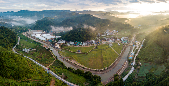 英德連樟中心村的晨曦。清遠(yuǎn)日報(bào)全媒體記者 邱煒民 攝