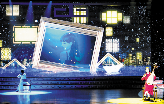9月29日,第十屆中國曲藝節(jié)在河南省平頂山市文化藝術(shù)中心開幕,來自全國各地的曲藝演員為觀眾獻(xiàn)上一場精彩紛呈的曲藝盛宴。本屆曲藝節(jié)采取現(xiàn)場演出和線上展演相結(jié)合的方式舉辦。圖為在河南省平頂山市文化藝術(shù)中心,曲藝演員在舞臺上表演節(jié)目。( 新華社記者 郝 源 攝)