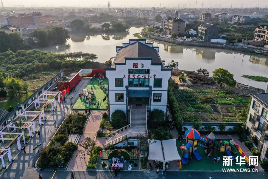 11月7日,在杭州市余杭區(qū)塘棲鎮(zhèn)三星村文化禮堂前,村民在展示傳統(tǒng)技藝“翻絲綿”(無人機照片)。當日,浙江省杭州市余杭區(qū)農村文化禮堂“百村千場”聯(lián)盟走親在塘棲鎮(zhèn)三星村文化禮堂正式啟動?;顒蝇F(xiàn)場組織了米塑、滾燈、鰲魚燈、高蹺、掮爐子等余杭非遺技藝走親展示以及塘棲鎮(zhèn)禮堂聯(lián)盟原創(chuàng)節(jié)目展演。 從2020年3月開始,浙江省杭州市余杭區(qū)塘棲鎮(zhèn)以“小康路上我們一起曬幸福”為主題,啟動美麗鄉(xiāng)村禮堂文化節(jié)活動,開展“幸福接力賽”、文化“云”講課等一系列基層文化活動。塘棲鎮(zhèn)還創(chuàng)新推進了“禮堂聯(lián)盟”結對互促工作,與區(qū)級文化團隊結對共建,使鄉(xiāng)村文化禮堂“活”起來,全面提升鄉(xiāng)村百姓的幸福感。新華社記者 徐昱 攝