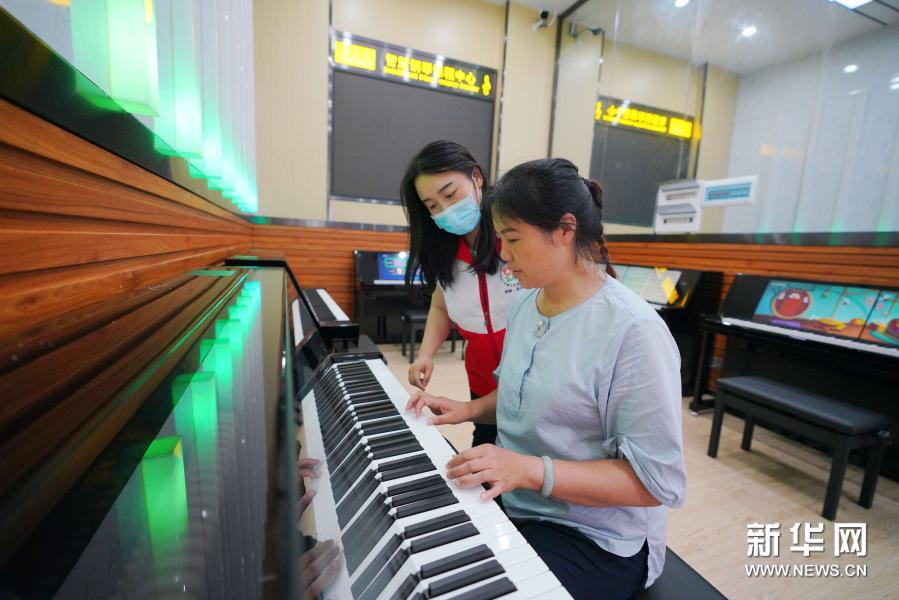 在湖南長(zhǎng)沙縣文化館的“悅藝空間”,志愿者在教市民使用智慧鋼琴(6月10日攝)。新華社發(fā)(長(zhǎng)沙縣文化館供圖)
