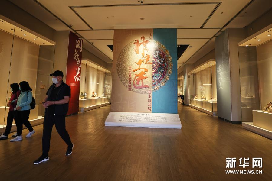 12月30日,人們在海南省博物館參觀2020海南自貿(mào)港大國非遺工匠藝術(shù)珍品展。近日,2020海南自貿(mào)港大國非遺工匠藝術(shù)珍品展在海南省博物館開展,展覽分為大國非遺工匠藝術(shù)珍品展和技藝傳承展兩大展區(qū)。珍品展展出北京景泰藍(lán)、雕漆、景德鎮(zhèn)陶瓷、海南工藝美術(shù)代表作品等具有代表性的非物質(zhì)文化遺產(chǎn)作品,在技藝傳承展區(qū),非遺手工藝人現(xiàn)場展演展示黎錦、苗繡、雙面繡、木雕等技法。(新華社記者 張麗蕓 攝)