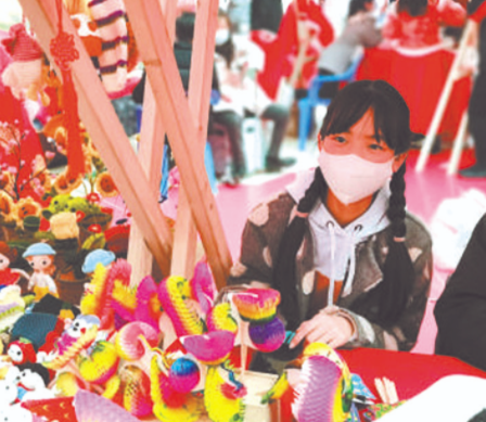 鐘文參加的展覽,是在武漢市婦聯(lián)、文旅局等多部門支持下舉辦的一項(xiàng)非遺年俗展。在這里,匯聚了景泰藍(lán)、漢繡、剪紙、糖畫、捏面人等傳統(tǒng)非遺和現(xiàn)代手工項(xiàng)目,內(nèi)容豐富,年味十足。