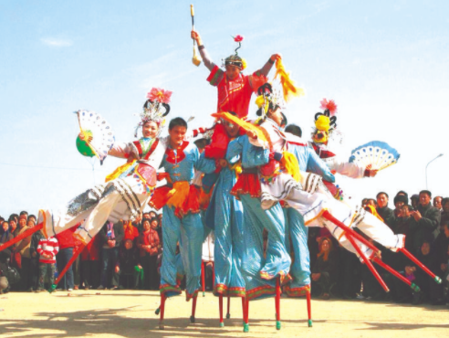 高蹺俗稱“拐子”,因舞蹈時腳踩木蹺而得名。木蹺高度不一,有的低至一尺,有的高達一丈五尺,不過一般多為四五尺。高蹺的表演形式有單拐、雙拐,亦有三人四拐,其中舞者多扮演某個古代神話或歷史故事中的人物,服飾多模仿戲曲行頭,常用道具有扇子、手絹、木棍、刀槍等。高蹺有文高蹺、武高蹺之分,文高蹺是用弦樂或吹鼓樂伴奏,邊走邊舞,變換著各種隊形;武高蹺則用打擊樂伴奏,以表演特技為主。(小編綜合整理)