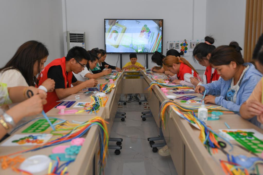 7月5日,在成都市溫江區(qū)衍匠文創(chuàng)工作室,不少市民前來體驗(yàn)衍紙畫制作。新華社記者 胥冰潔 攝