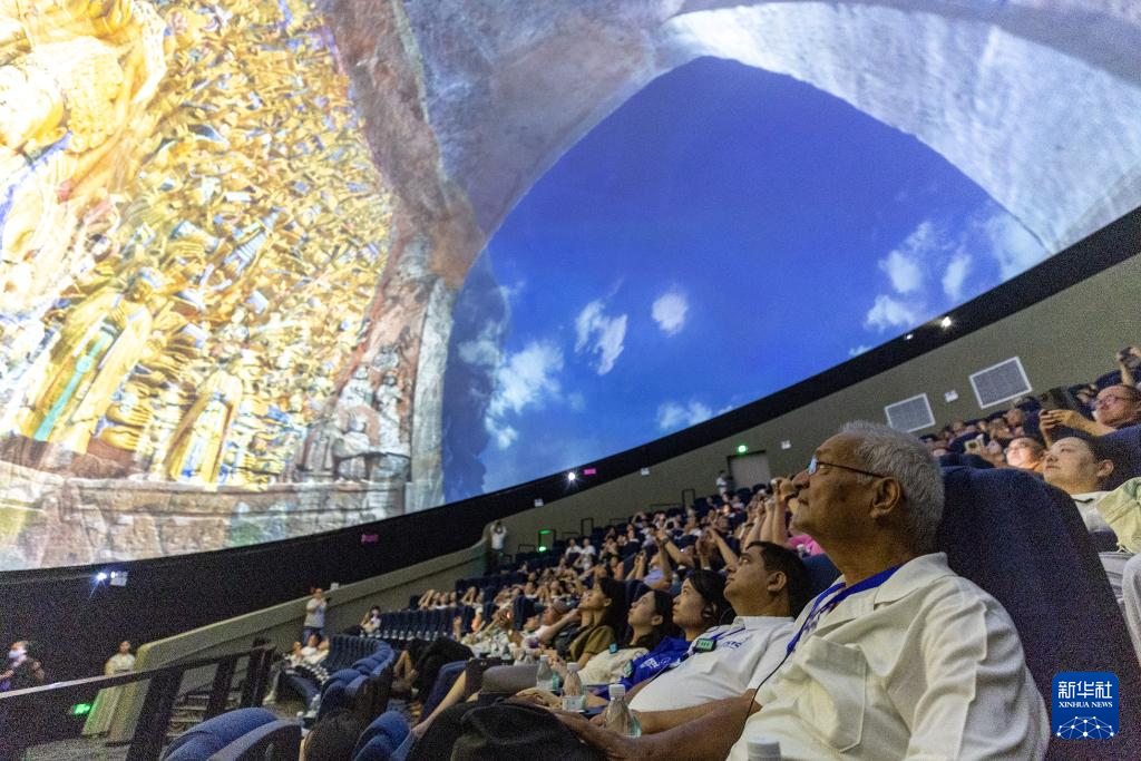 8月19日,嘉賓在重慶市大足區(qū)觀看8K球幕電影《大足石刻》。新華社記者黃偉攝