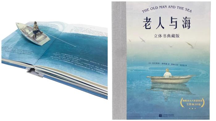 《走近三星堆》是一本極具視覺震撼力的三星堆全景紙藝立體書,它用7個(gè)立體跨頁(yè),帶領(lǐng)讀者在探尋中揭開古蜀國(guó)的神秘面紗,全面呈現(xiàn)了三星堆的考古發(fā)掘歷程和三星堆文明的大致面貌,還對(duì)三星堆遺址第二輪考古發(fā)掘的初步成果做了概要性的介紹,并融入了很多考古小知識(shí),其入選“2022年度中國(guó)好書”,并成為首個(gè)入選該獎(jiǎng)項(xiàng)的立體書?!独先伺c?!肥鞘撞恳粤Ⅲw書形式呈現(xiàn)的諾貝爾文學(xué)獎(jiǎng)作品,全書共有20余個(gè)精巧可動(dòng)的立體紙藝裝置,在不弱化名著原文的基礎(chǔ)上,將立體插畫融入書中,二者相輔相成,既能讓讀者體驗(yàn)到傳統(tǒng)閱讀的樂趣,又能夠沉浸于豐富的立體紙藝場(chǎng)景中。