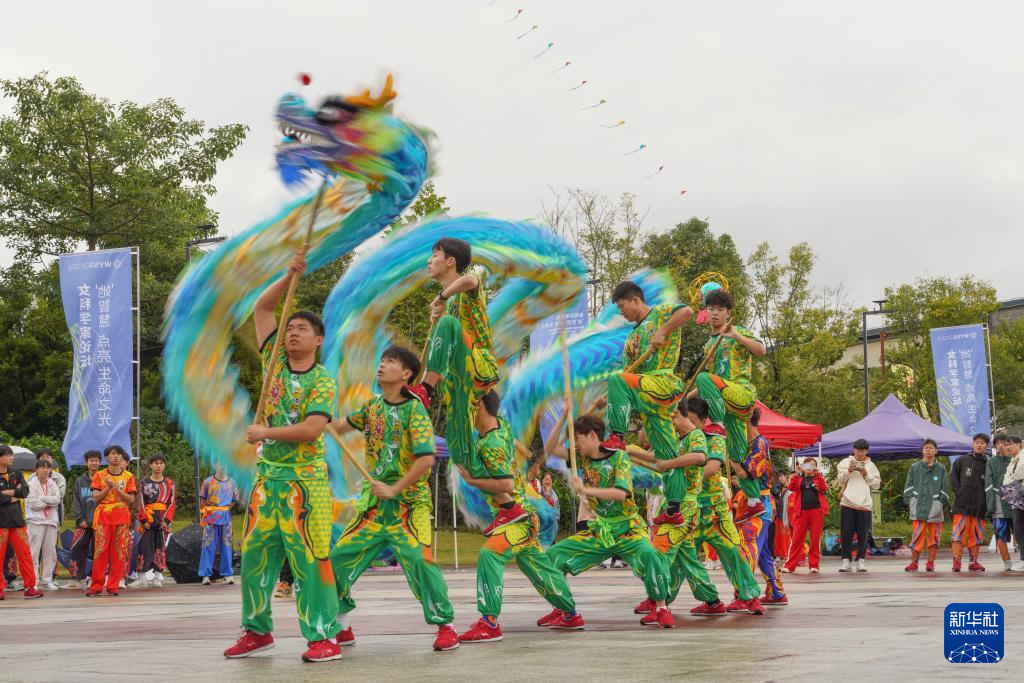 當(dāng)日,溫州市第八屆全民運(yùn)動(dòng)大會(huì)2023年舞龍舞獅精英賽在溫州市三垟濕地公園北廣場(chǎng)舉行。本次比賽分舞龍自選、舞獅自選、創(chuàng)意龍獅、彩帶龍等項(xiàng)目,設(shè)兒童組、青少年組和成年組三個(gè)組別,吸引來自溫州各地的舞龍舞獅隊(duì)參加。新華社發(fā)(蘇巧將攝)
