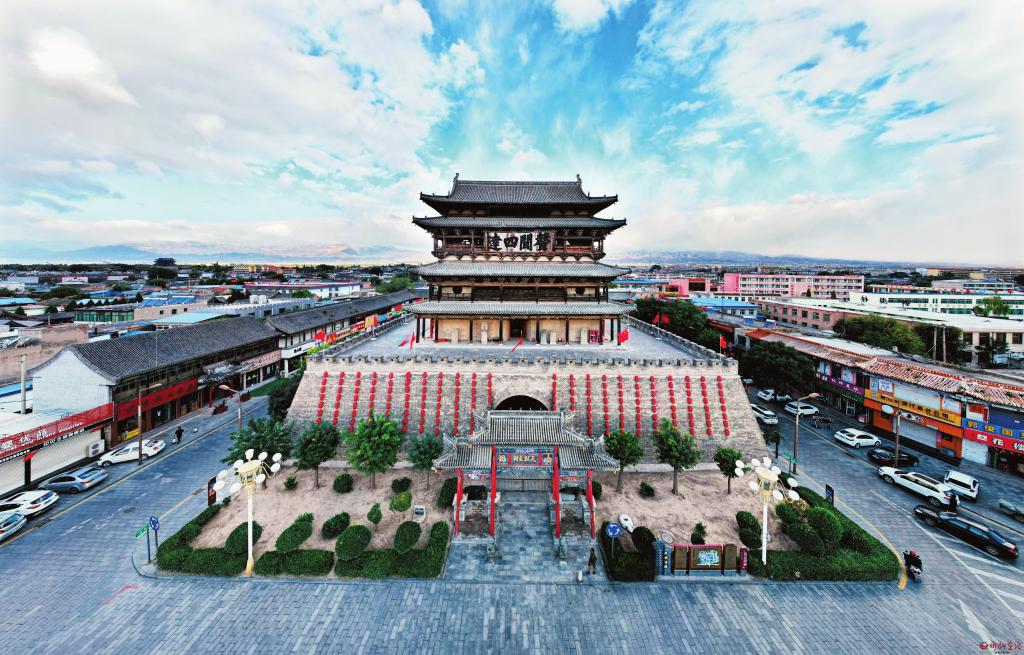 雁門關、寧武關、偏頭關,是山西內長城的三關。其中雁門關地處要沖,歷來是長城內外兵家必爭之地。代縣古城因雁門關而生,因雁門關而聞名,城外有三十九堡十二聯城,城內有關城、甕城,以及城墻上的十二座門樓、角樓,再加上城中的鼓樓、鐘樓,由此構筑成龐大的軍事防御體系。邊靖樓地處古城中心,是整個三關防御體系的核心指揮部,這也正是一個州治所在地的鼓樓規(guī)模遠遠超過京師鼓樓規(guī)模的重要原因。